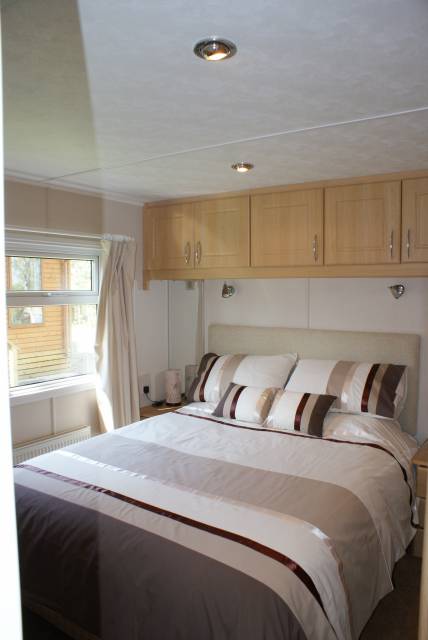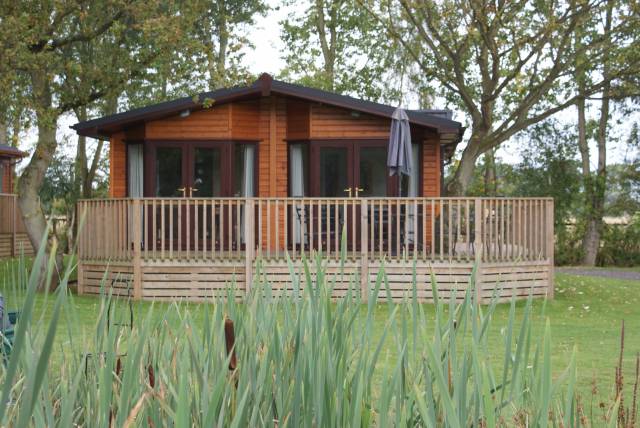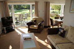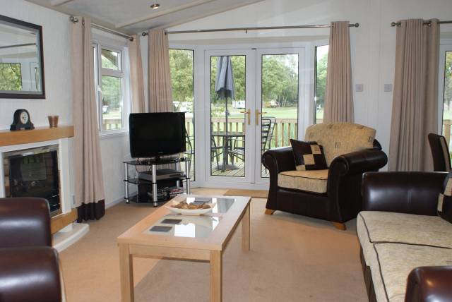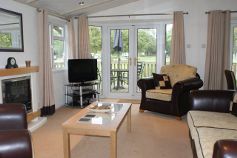 Across the front of Fountain Lake Lodge there is yet another set of french doors, which can be flung open giving an open air feel to the lodge - this is where we have placed the 6 seater dining table, where you can eat in comfort and not miss a moment of the beautiful view around Goosewood Holiday Park.