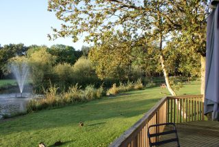 At the front of Fountain Lake Lodge, overlooking the Fishing Lake, there is a modern, comfortable living area, where you can relax and gaze out of the french doors at the stunning view of the lake. Or you could listen to music on the iPod docking station, or you could watch one of the many digital channels, or a DVD on the LCD TV.