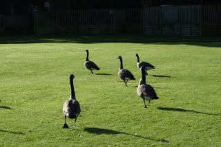 Visiting Canadian Geese add to the hundreds of ducks on the park, all keen to visit you when you sit on the balcony, hoping that you feed them some bread....
